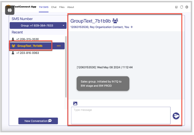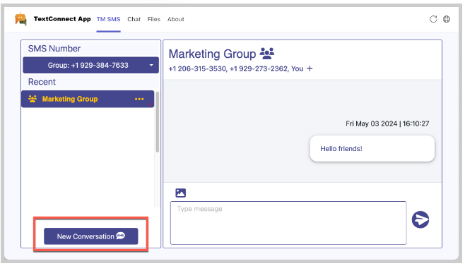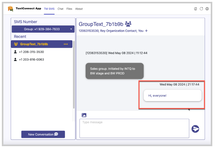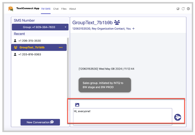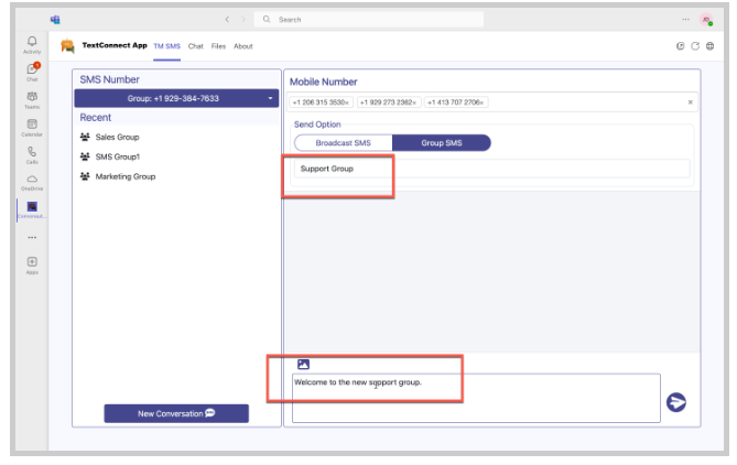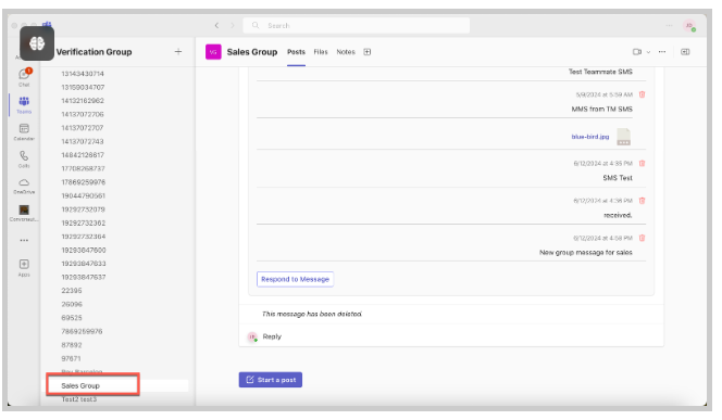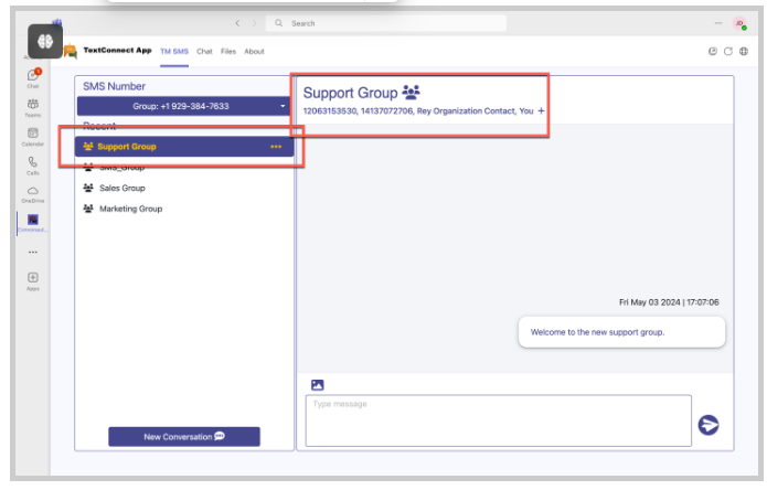 Created groups display in the Teams Channel. Recipients may reply to the group text through the Teams Channel.
