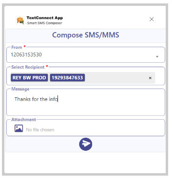 2. Click the Respond to Message button. The SMS Composer displays the following window with all the recipients of the group text.
