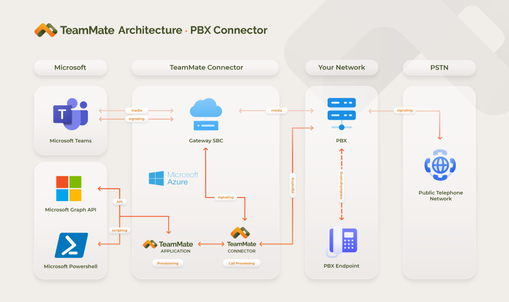 through your existing PBX to the endpoint in Teams’ desktop, browser of mobile app