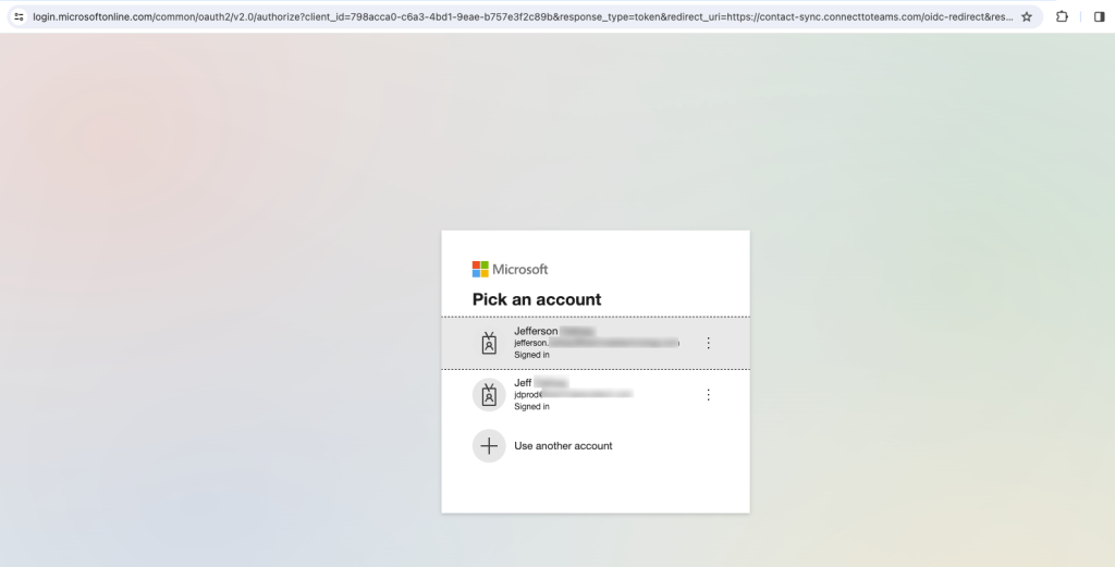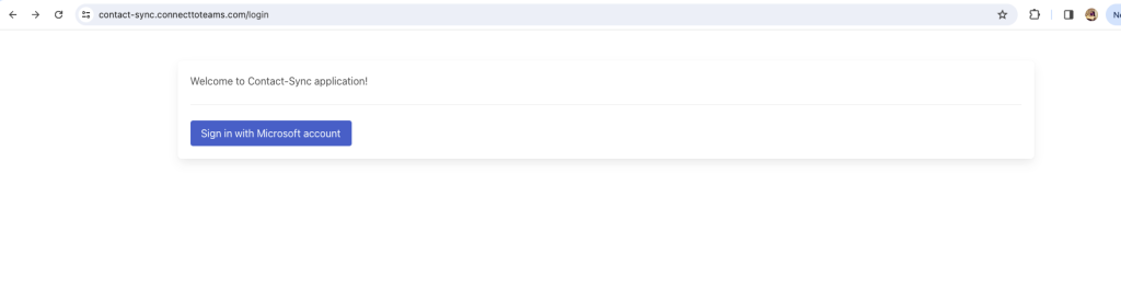 1. Log in to the Contact Sync application with your Microsoft account credentials.